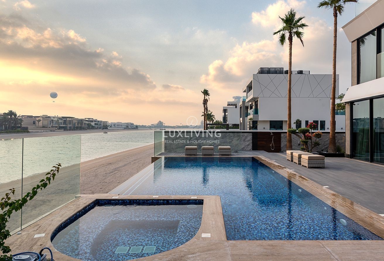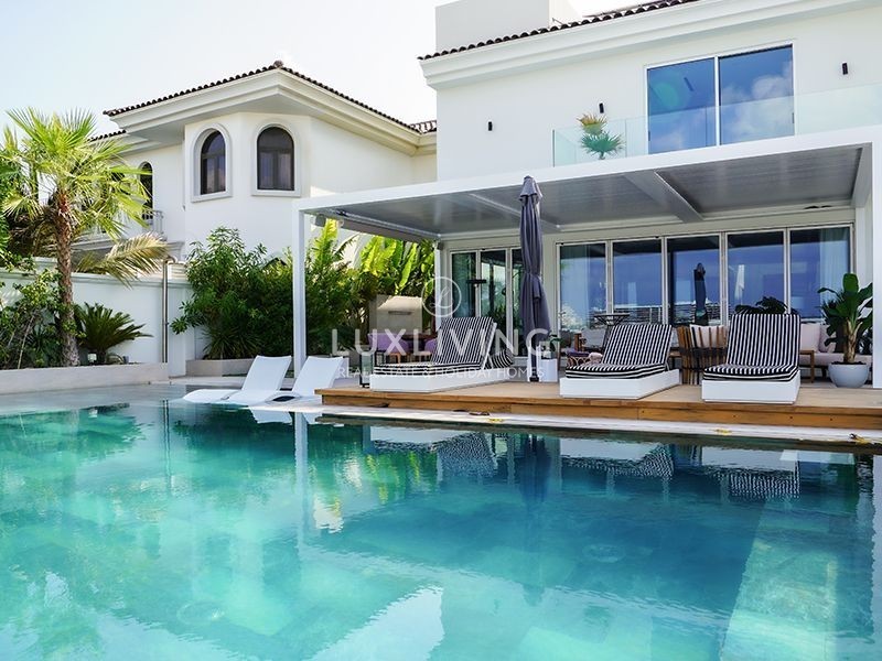 Luxliving Real Estate is thrilled to present this stunning 6-bedroom luxury villa for sale in the exclusive Signature Villas on Palm Jumeirah. This exquisite property boasts two spacious living areas, a maid’s room, a driver’s room, and breathtaking views of the Dubai Eye, Burj Al Arab, and Marina Skyline.
